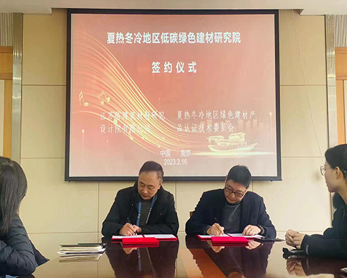 近期,我司與綠色建材產品認證技術委員會夏熱冬冷地區工作委員會在江蘇省建筑材料研究設計院有限公司簽署了夏熱冬冷地區低碳綠色建材研究院合作協議。